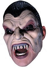 A classic Halloween costume! This half-mask Vampire mask adds gruesome detail to your nightstalker costume while leaving your mouth uncovered to show your fangs or have a little...snack. Adult sized latex mask.