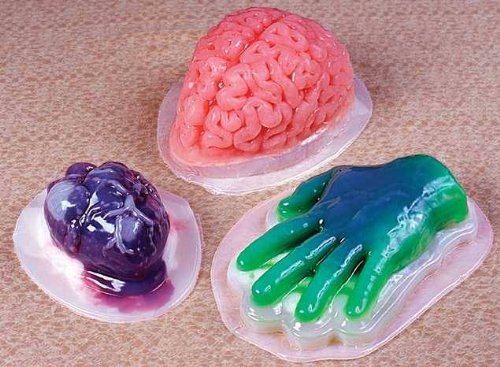 Plastic anatomically correct heart mold. Fill the plastic heart mold with a customized gelatin mix and a few hours later, out pops a life-size, anatomically correct heart. Delicious! Recipe included.