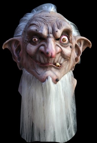 Necromancers were originally proprietors of divination and black magic. With the Necromancer Mask you can take on the roll of a dark wizard or even wear it for a goblin, troll, or scary old man costume. The mask has a human face with pointed ears and nose, wrinkled and aged skin, and white hair and a white beard. Adult sized latex mask covers whole face and neck.